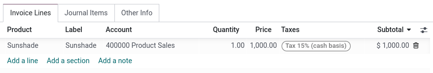 建议您使用默认的:guilabel:收取的基本税科目,以便余额为零,收入科目不会受到非必要会计变动的影响。转到:menuselection:配置-->设置-->税项,然后在:guilabel:收付`下选择:guilabel:`收取的基本税科目。